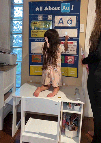 ✅ Answer: This interactive alphabet chart is designed for preschool and kindergarten children (ages 3–6). It helps with letter recognition, phonics, handwriting, and early spelling skills.