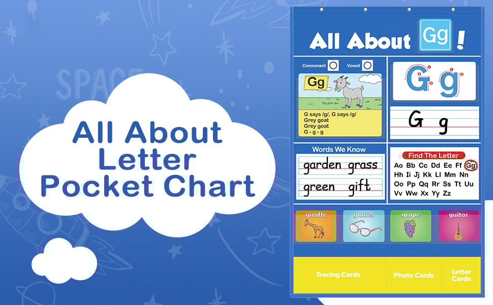 Comprehensive Alphabet Practice: Our interactive alphabet pocket chart helps children master letters A to Z through engaging hands-on activities. With vibrant colors, playful images, and interactive methods, it supports letter recognition, sound identification, handwriting, beginning sounds, spelling, and more